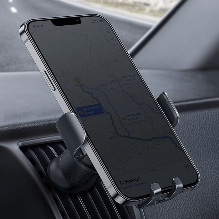 Baseus ensures the security of your smartphone. You attach the handle to the ventilation grille with a stainless steel hook. So you can drive through the speed bumps without worrying about damaging your smartphone.