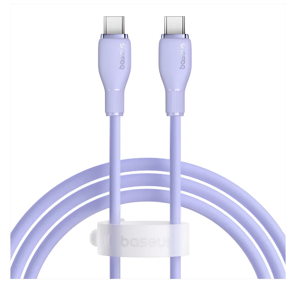 The 100W Baseus Pudding Series Type-C cable features elegant colors and a unique design with a transparent body.
