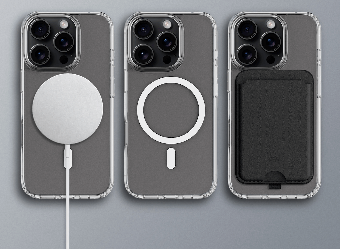 Connect to a wireless charger or a magnetic card wallet with ease.