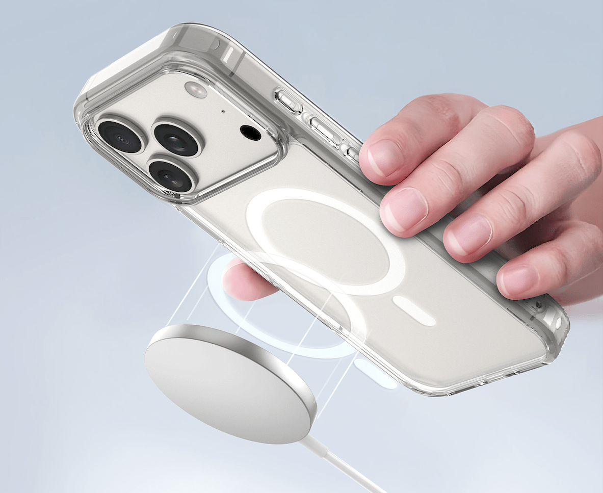 Connect to a wireless charger or a magnetic card wallet with ease.