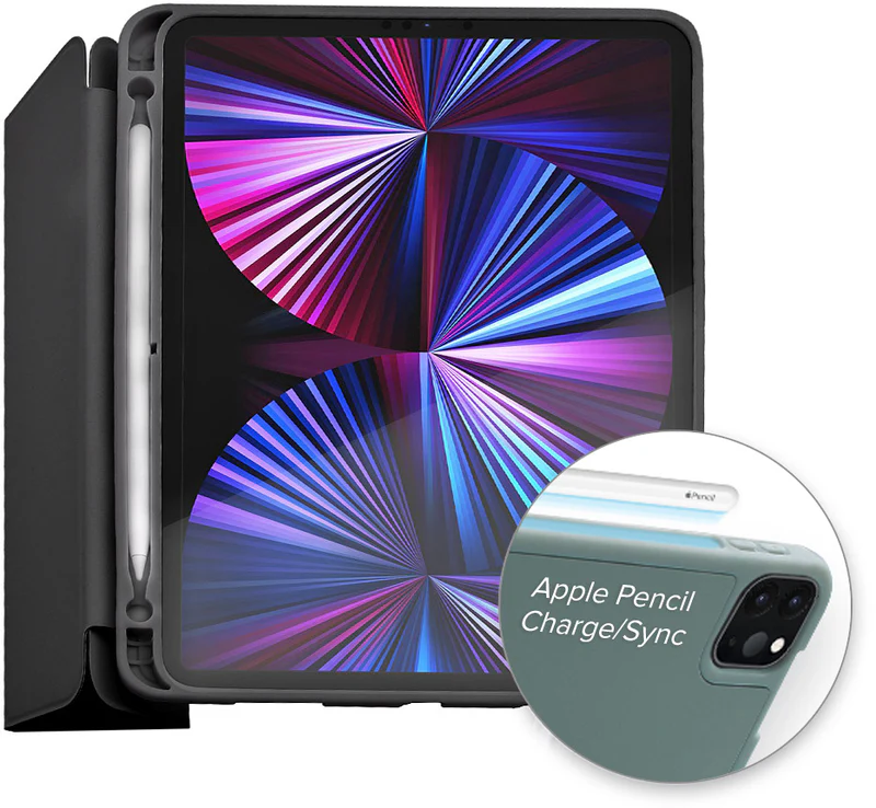 A built-in compartment keeps your Apple Pencil with your iPad. This compartment also supports paring/charing functionalities.