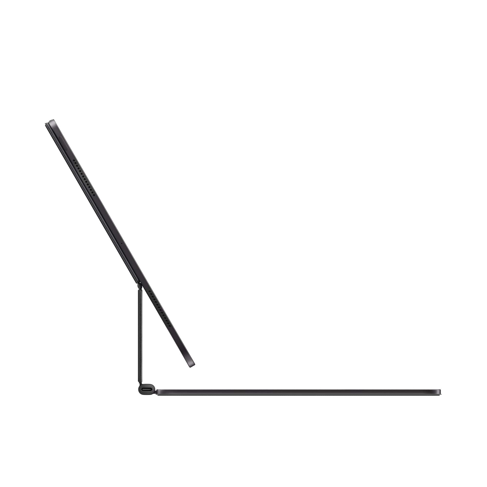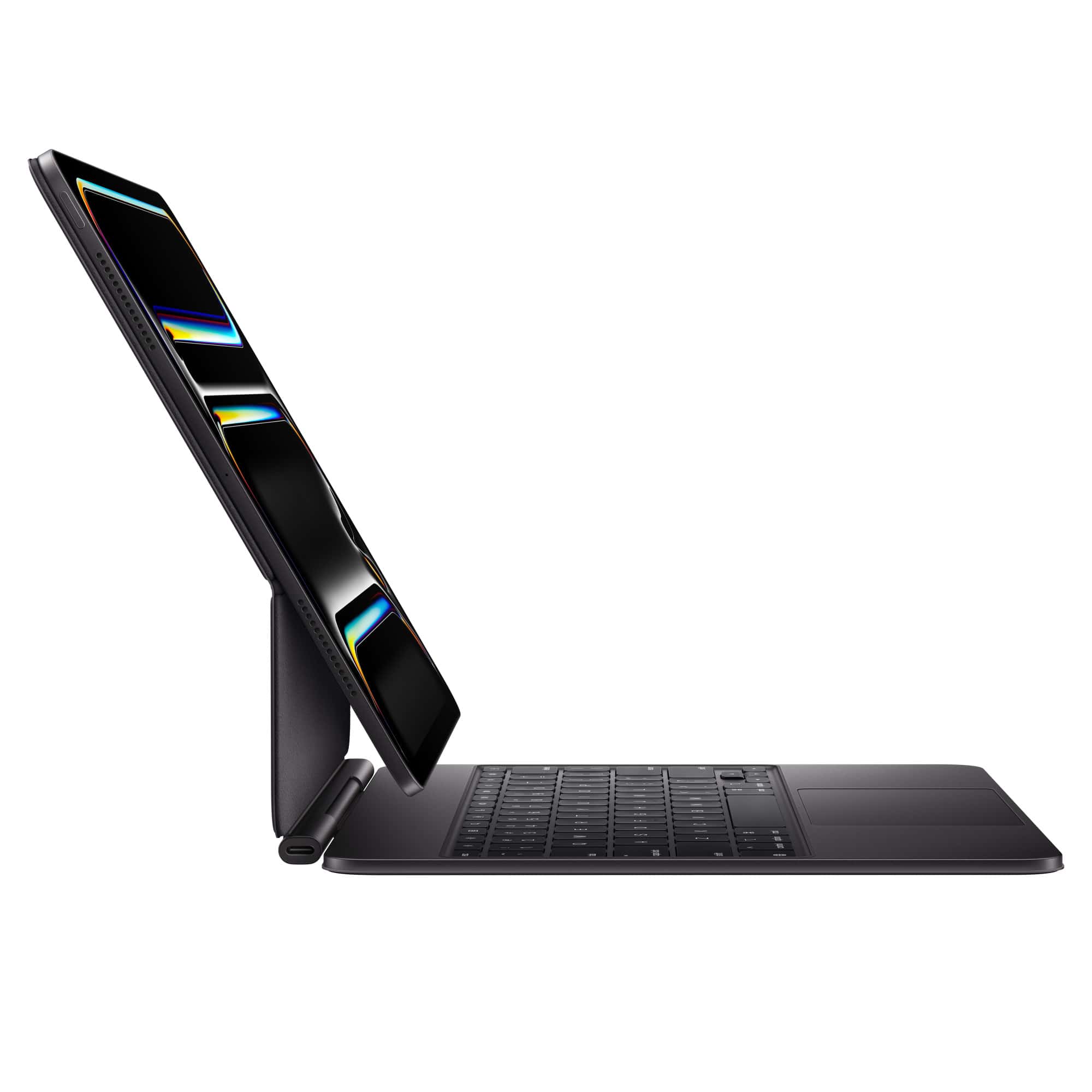 Magic Keyboard for iPad Pro delivers an amazing typing and trackpad experience in a sleek, portable design with an aluminium palm rest. The keyboard includes a 14-key function row for quick access to screen brightness, volume controls and other features, and a USB‑C connector for pass-through charging. The floating cantilevered design smoothly adjusts to multiple viewing angles.
